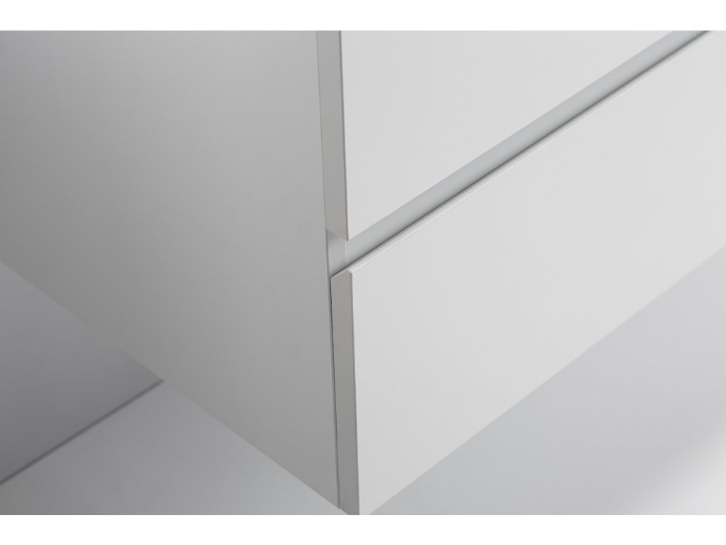 Koupelnové skříňky jsou vyrobeny z MDF lamina (středně hustá dřevovláknitá deska) s nalisovanou melaminovou fólií, která je odolná vůči vlhkosti, poškrábání, UV záření a běžným čisticím prostředkům. Povrch je hladký, tvrdý, homogenní a snadno se čistí. MDF desky se nekroutí jako masivní dřevo. Pokud dojde k mechanickému narušení laminace, samotné MDF jádro může navlhnout.