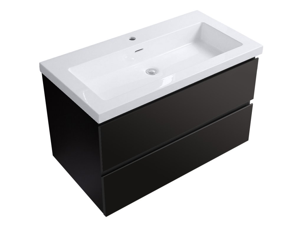 CERANO - Koupelnová skříňka Carole - černá matná + umyvadlo z lit. Mramoru Ovo - bílá lesklá - 101x49,5x46,5 cm