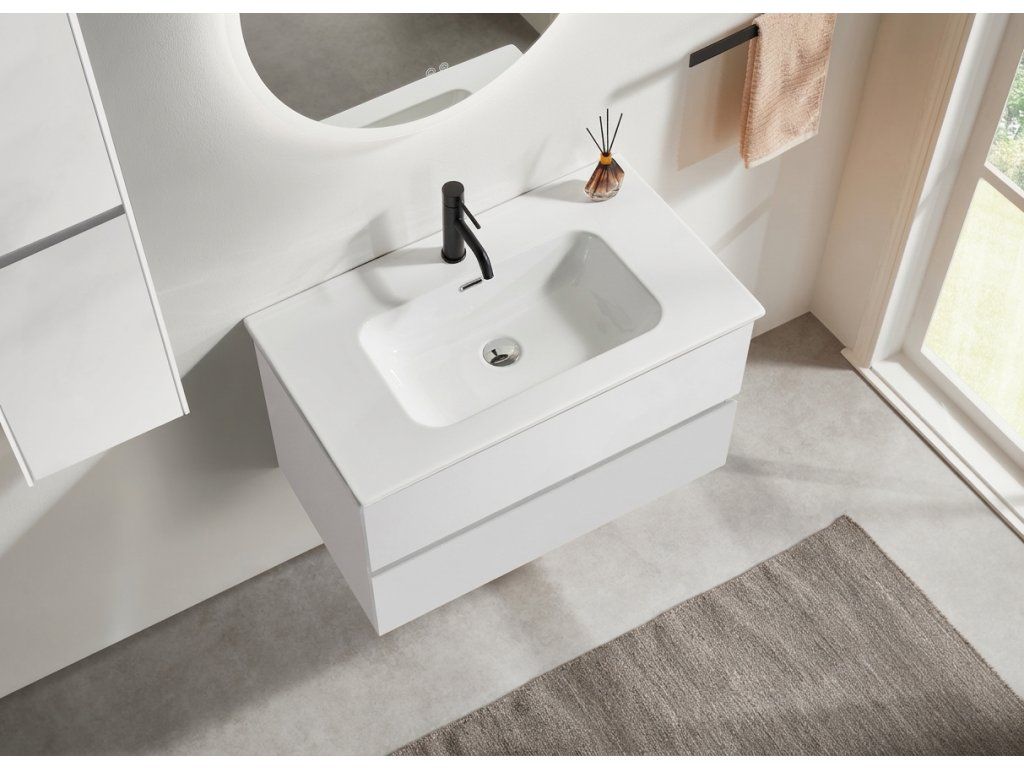 Ke skříňkám vždy nabízíme plně kompatibilní umyvadla nebo desky, u kterých máme jistotu správného usazení a funkčnosti. U umyvadel od jiných dodavatelů je použití možné, ale nemůžeme zaručit plnou kompatibilitu a bezproblémovou montáž.