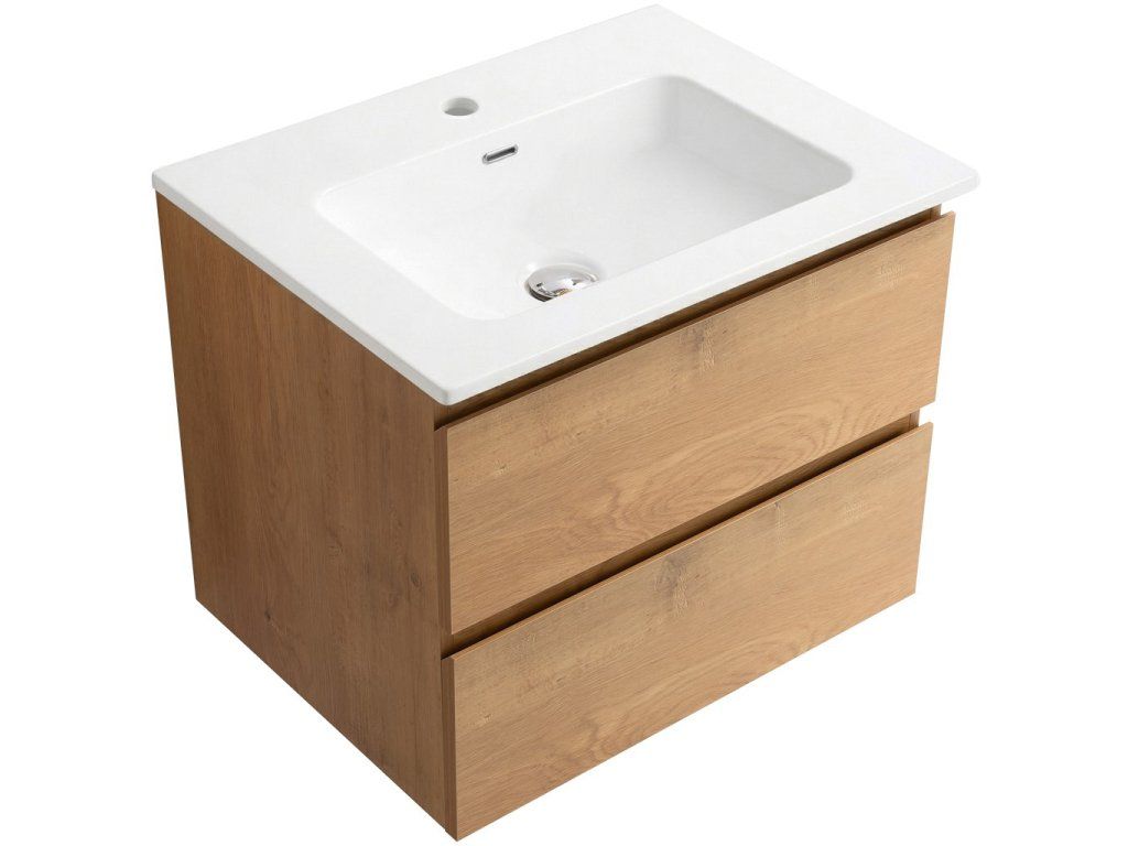 CERANO - Koupelnová skříňka Carole - dub medový + keramické umyvadlo Novo - bílá lesklá - 61x49,5x46,5 cm