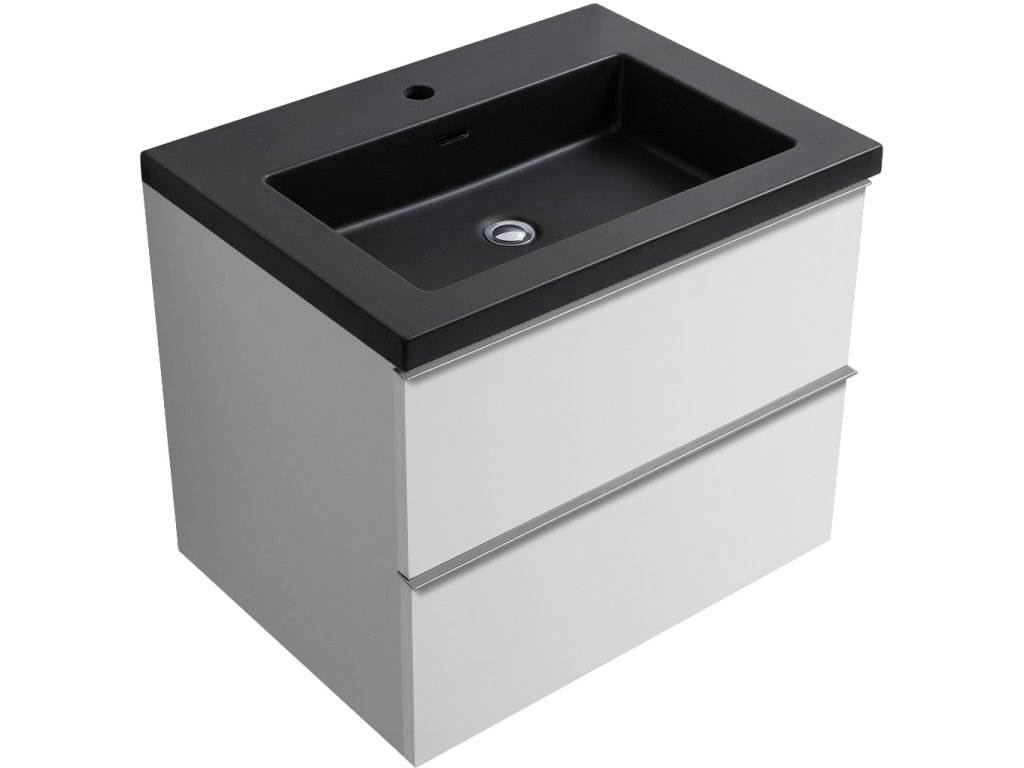 CERANO - Koupelnová skříňka Velora - černá matná - úchytka chromová + keramické umyvadlo Ovo - bílá matná - 69x53x46 cm