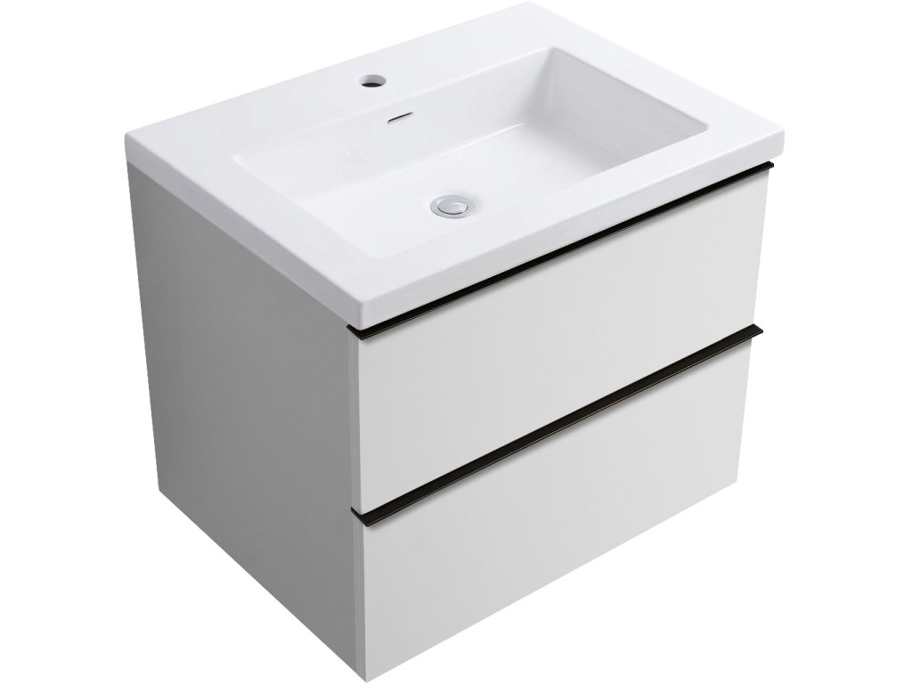 CERANO - Koupelnová skříňka Velora - bílá lesklá - úchytka černá + keramické umyvadlo Ovo - bílá matná - 59x53x46 cm