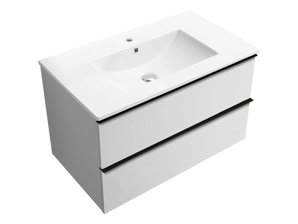 CERANO - Koupelnová skříňka Velora - bílá matná, úchytka černá + keramické umyvadlo Todo - 101x55x46,5 cm