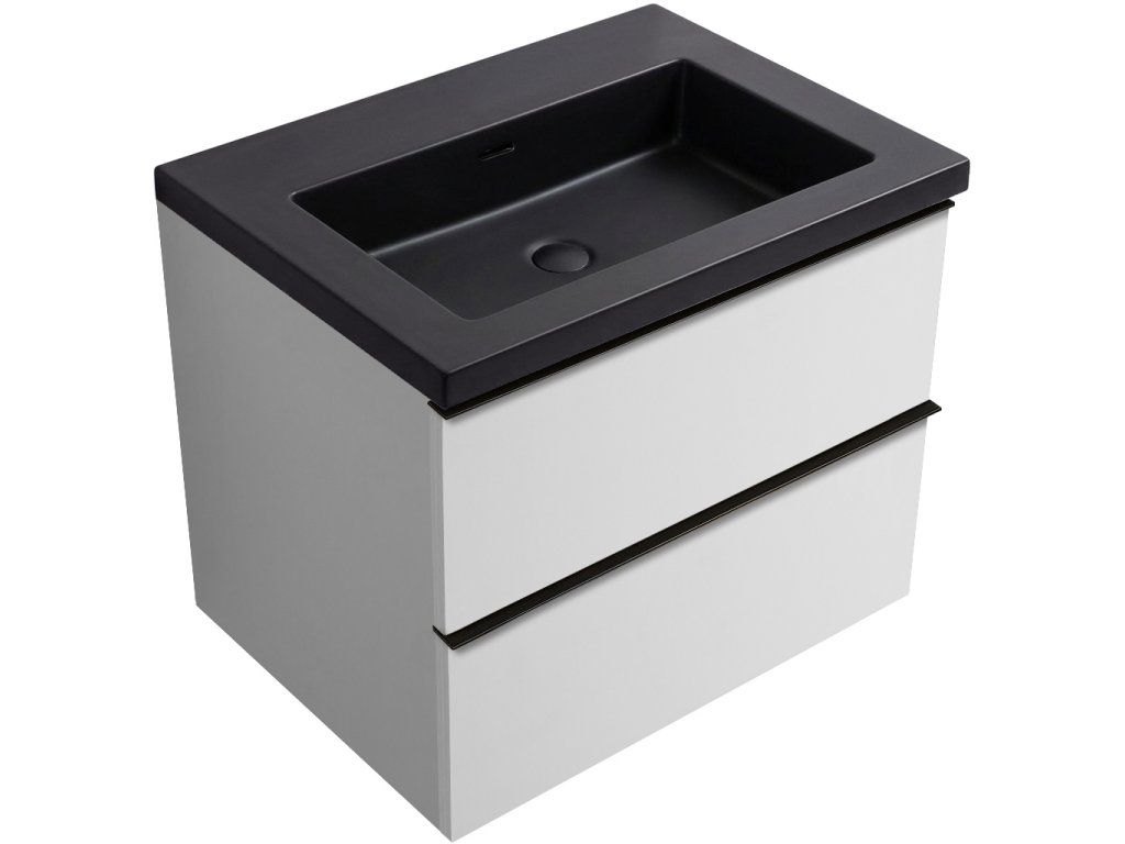 CERANO - Koupelnová skříňka Velora - bílá matná, úchytka černá + umyvadlo z lit. mramoru Ovo - černá matná - 60,5x58x46,5 cm