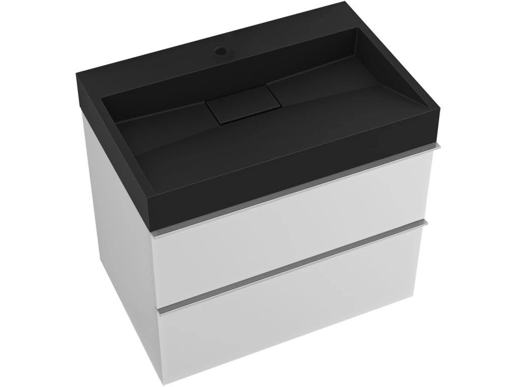 CERANO - Koupelnová skříňka Velora - bílá matná, úchytka chrom + umyvadlo z lit. mramoru s otvorem Vita - černá matná - 70x63x46,5 cm