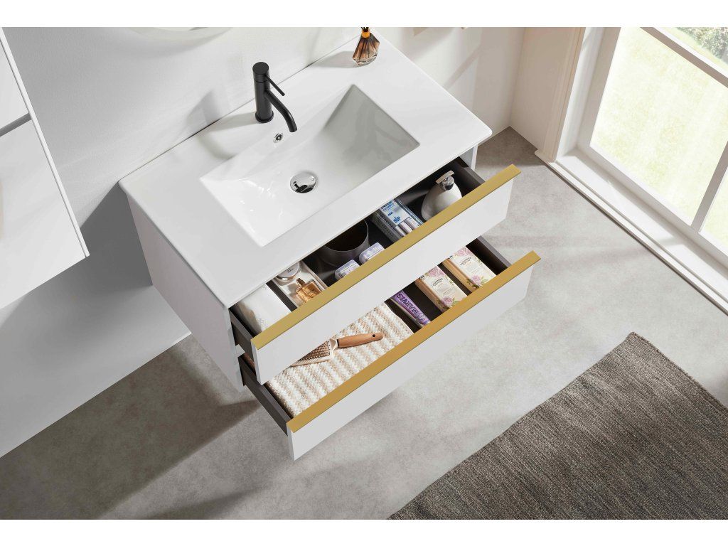 CERANO - Koupelnová skříňka Velora - bílá matná, úchytka zlatá + keramické umyvadlo Todo - 61x55x46,5 cm
