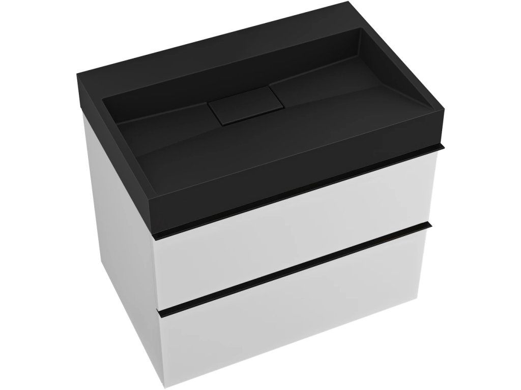 CERANO - Koupelnová skříňka Velora - bílá matná - úchytka černá + umyvadlo z litého mramoru Vita - černá - 70x53x46 cm