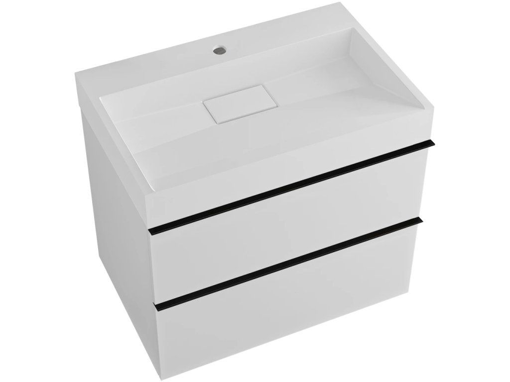 CERANO - Koupelnová skříňka Velora - bílá matná - úchytka černá + umyvadlo s otvorem pro baterii z litého mramoru Vita - bílá lesklá - 70x53x46 cm