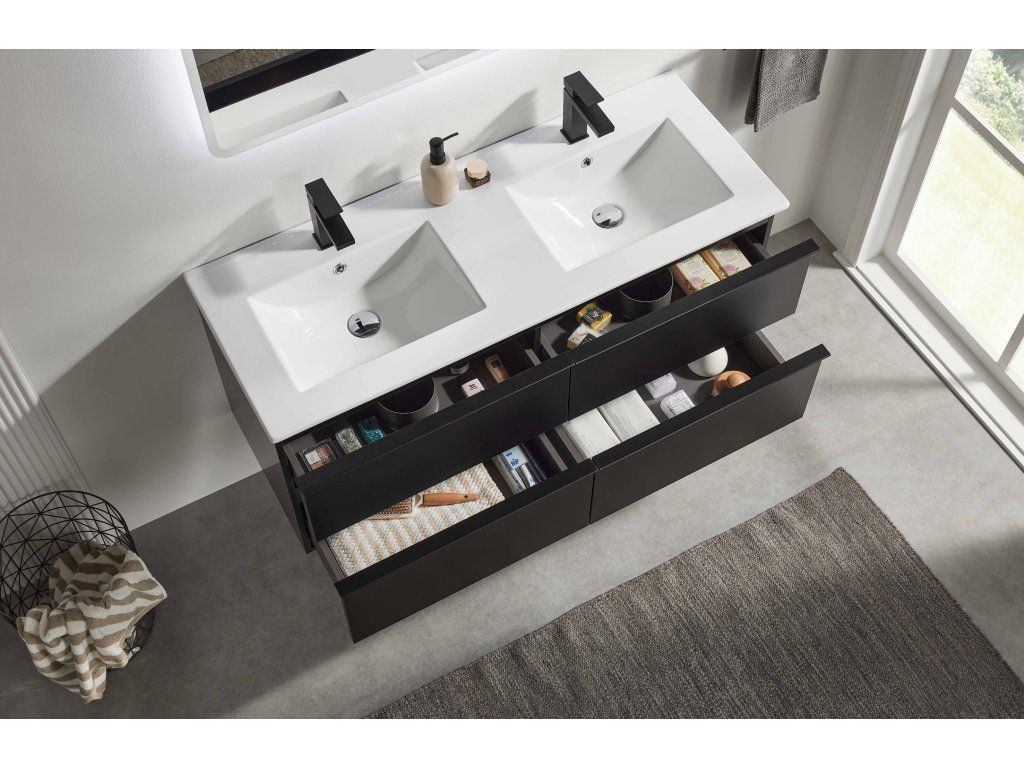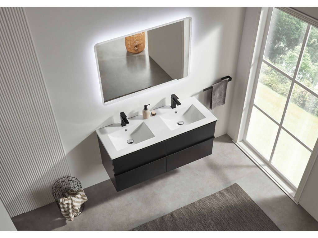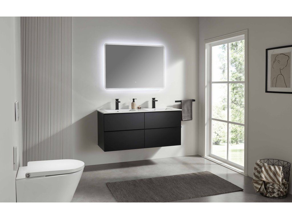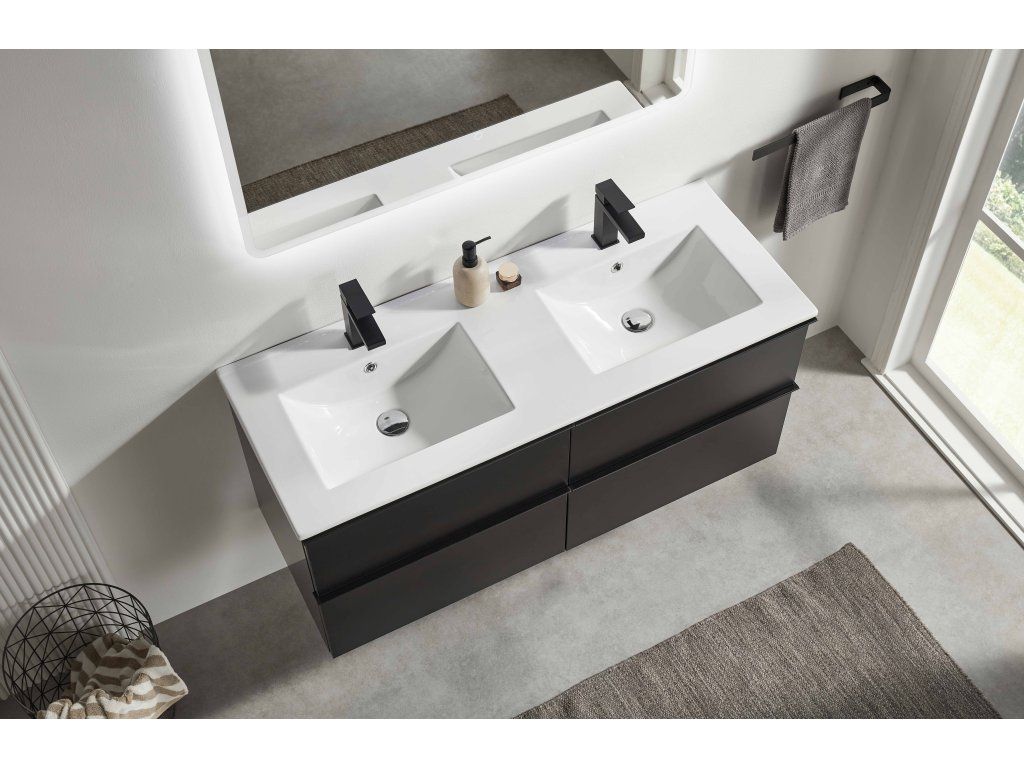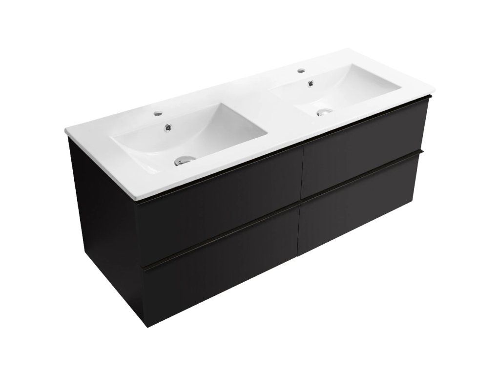 CERANO - Koupelnová skříňka Velora - černá matná, úchytka černá + keramické umyvadlo Todo - 121x55x46,5 cm