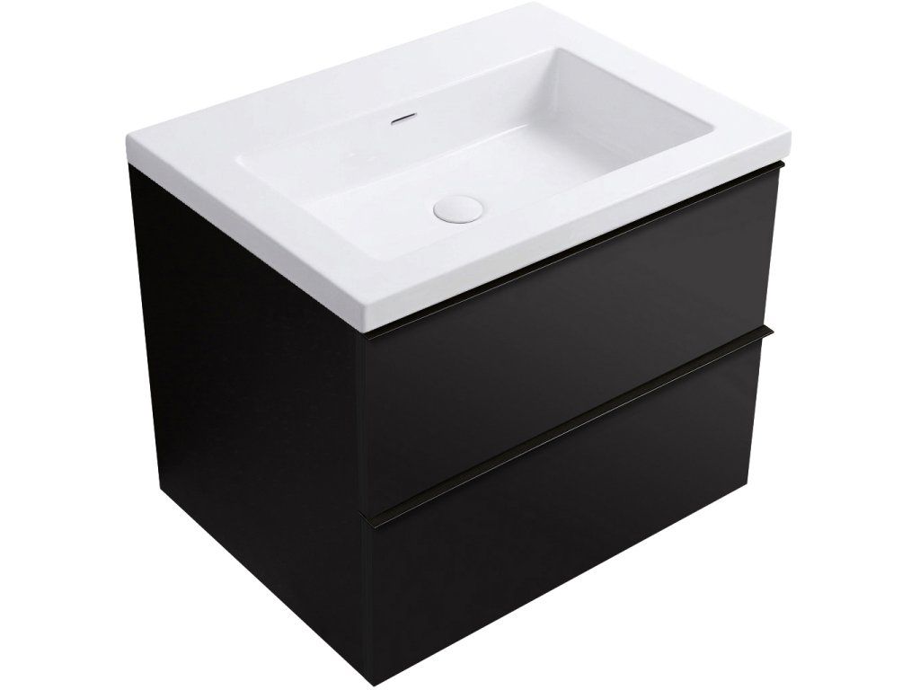CERANO - Koupelnová skříňka Velora - černá matná, úchytka černá + umyvadlo z lit. mramoru Ovo - bílá lesklá - 60,5x58x46,5 cm