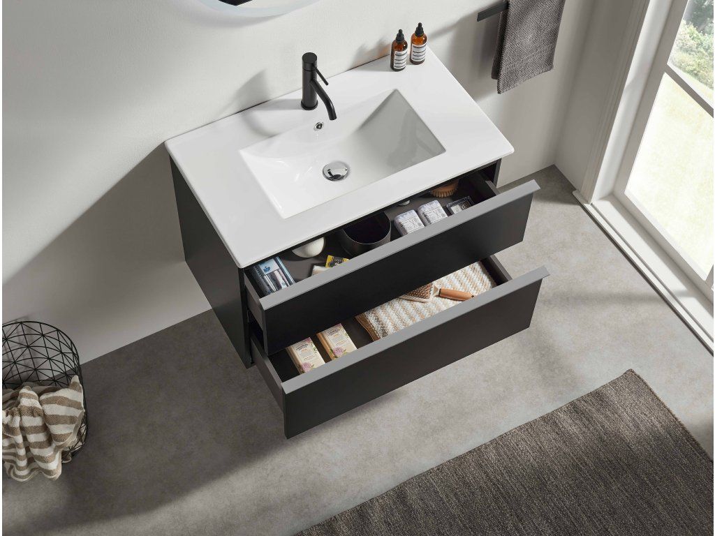CERANO - Koupelnová skříňka Velora - černá matná, úchytka chrom + keramické umyvadlo Todo - 81x55x46,5 cm