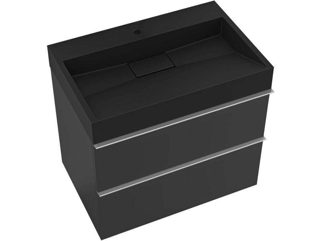 CERANO - Koupelnová skříňka Velora - černá matná, úchytka chrom + umyvadlo z lit. mramoru s otvorem Vita - černá matná - 70x63x46,5 cm