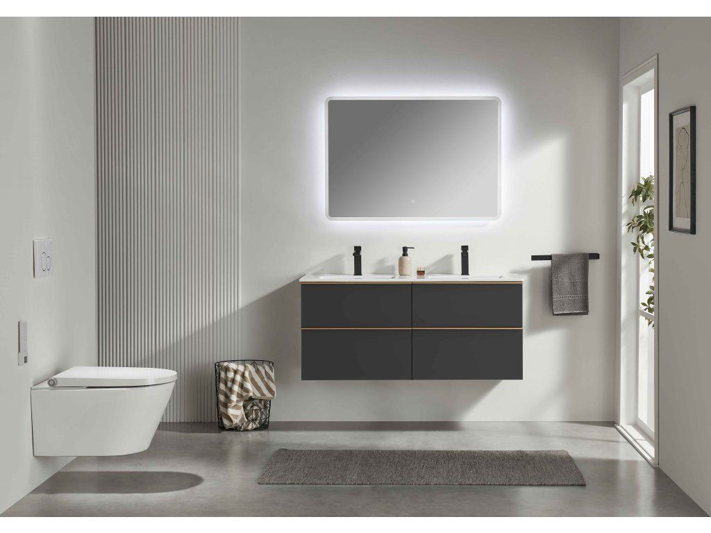 CERANO - Koupelnová skříňka Velora - černá matná, úchytka zlatá + keramické umyvadlo Todo - 121x55x46,5 cm