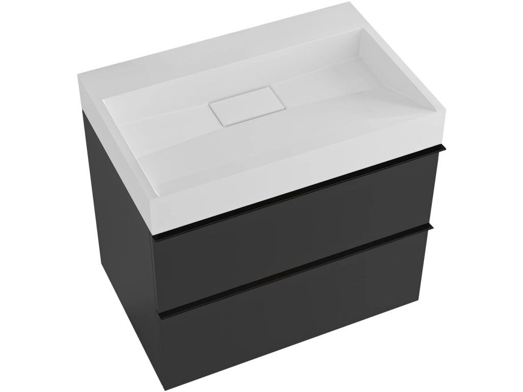 CERANO - Koupelnová skříňka Velora - černá matná - úchytka černá + umyvadlo z litého mramoru Vita - bílá lesklá - 70x53x46 cm