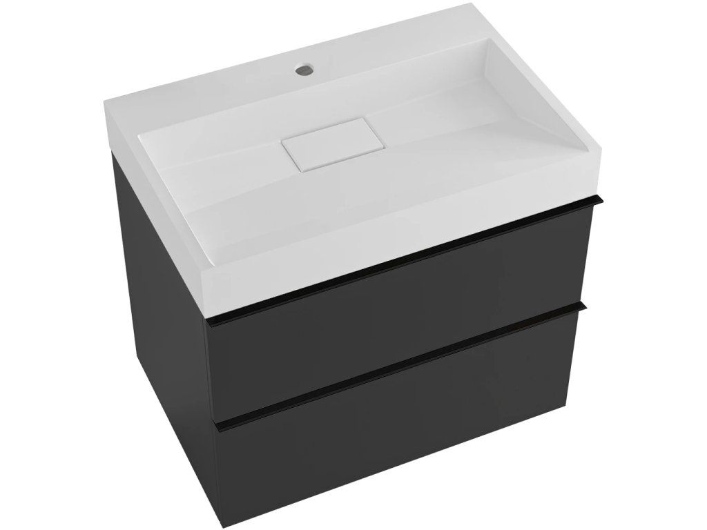 CERANO - Koupelnová skříňka Velora - černá matná - úchytka černá + umyvadlo s otvorem pro baterii z litého mramoru Vita - bílá matná - 70x53x46 cm