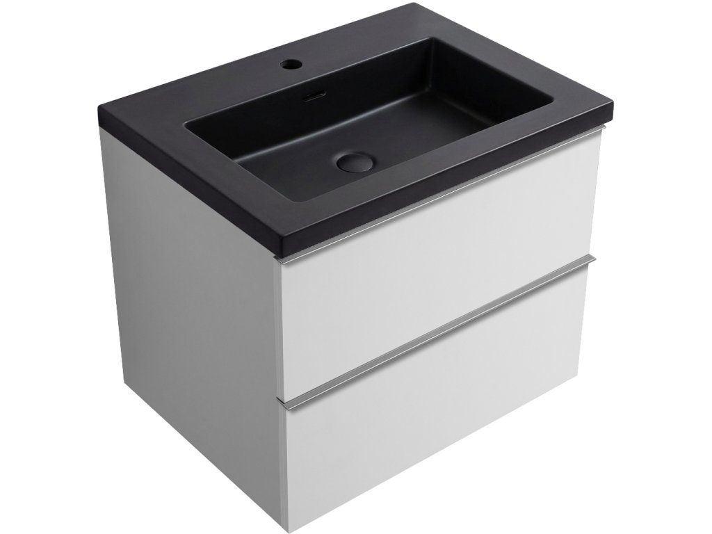 CERANO - Koupelnová skříňka Velora - černá matná - úchytka chromová + umyvadlo z lit. mramoru Ovo - bílá matná - 69x53x46 cm