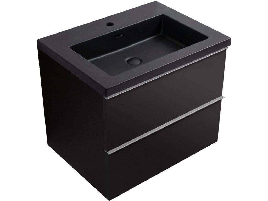 CERANO - Koupelnová skříňka Velora - černá matná - úchytka chromová + umyvadlo z lit. mramoru Ovo - černá matná - 69x53x46 cm