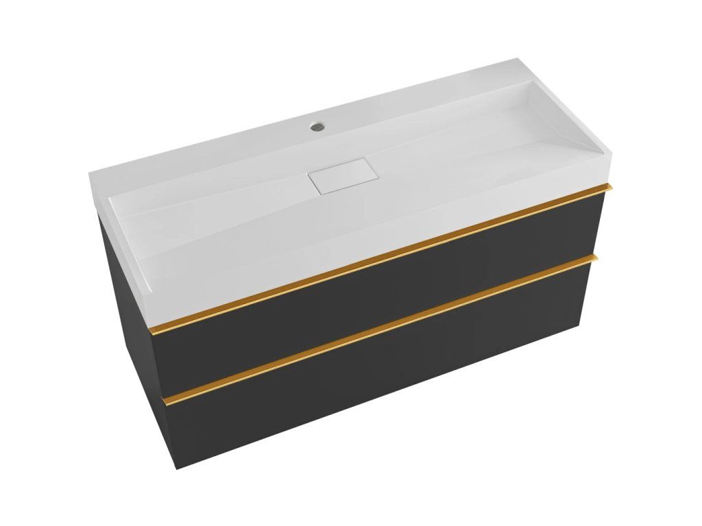 CERANO - Koupelnová skříňka Velora - černá matná - úchytka zlatá + umyvadlo s otvorem pro baterii z litého mramoru Vita - bílá matná - 100x53x46 cm