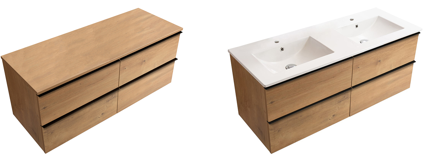 Ke skříňkám vždy nabízíme plně kompatibilní umyvadla nebo desky, u kterých máme jistotu správného usazení a funkčnosti. U umyvadel od jiných dodavatelů je použití možné, ale nemůžeme zaručit plnou kompatibilitu a bezproblémovou montáž.