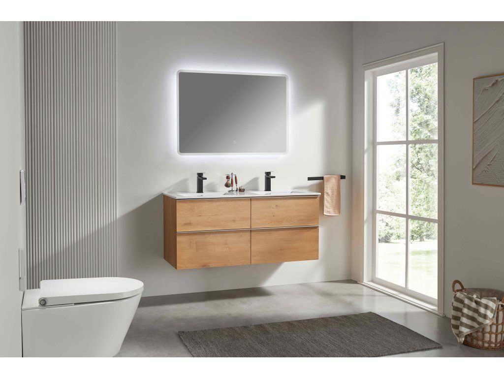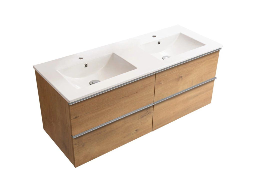CERANO - Koupelnová skříňka Velora - dub medový, úchytka chrom + keramické umyvadlo Todo - 121x55x46,5 cm