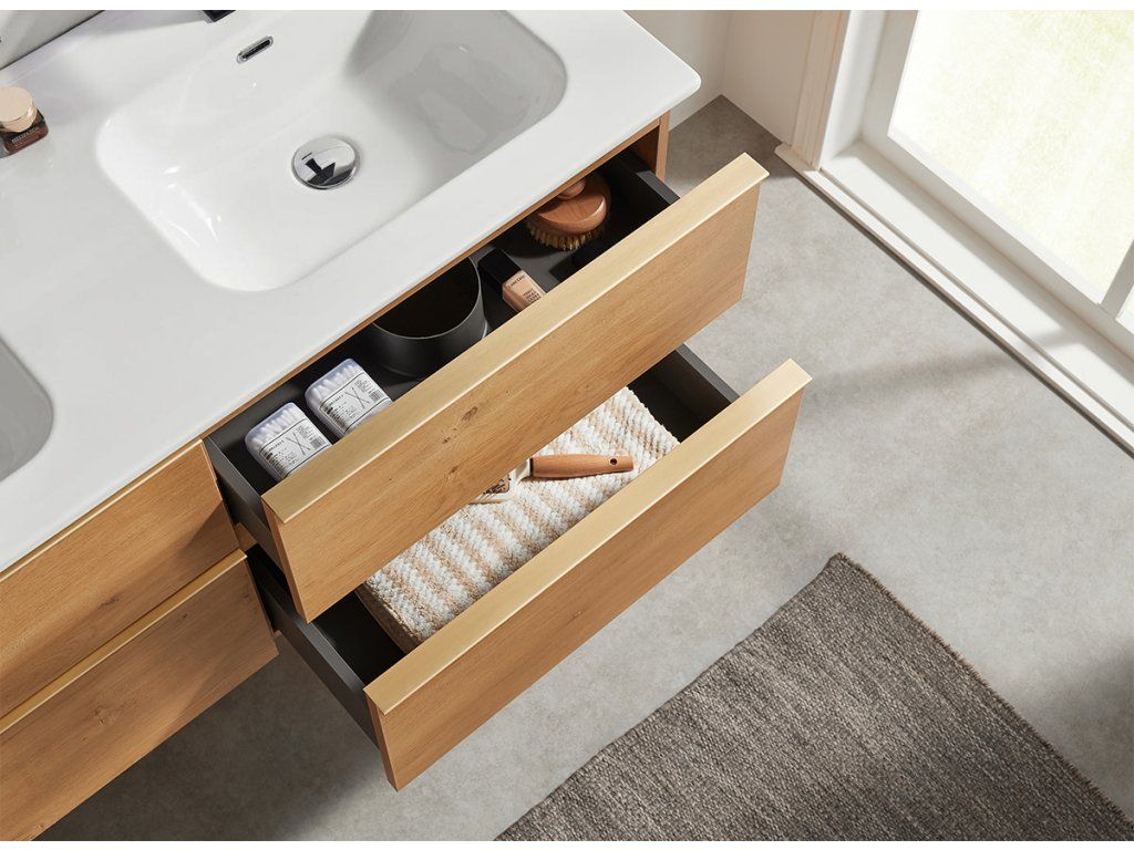 Díky úložnému prostoru je tento koupelnový nábytek velmi praktickým pomocníkem do každé koupelny. Kombinace inovativního a spolehlivého řešení, na kterém si naše značka zakládá, dala vzniknout kvalitnímu a zároveň velmi modernímu koupelnovému nábytku.