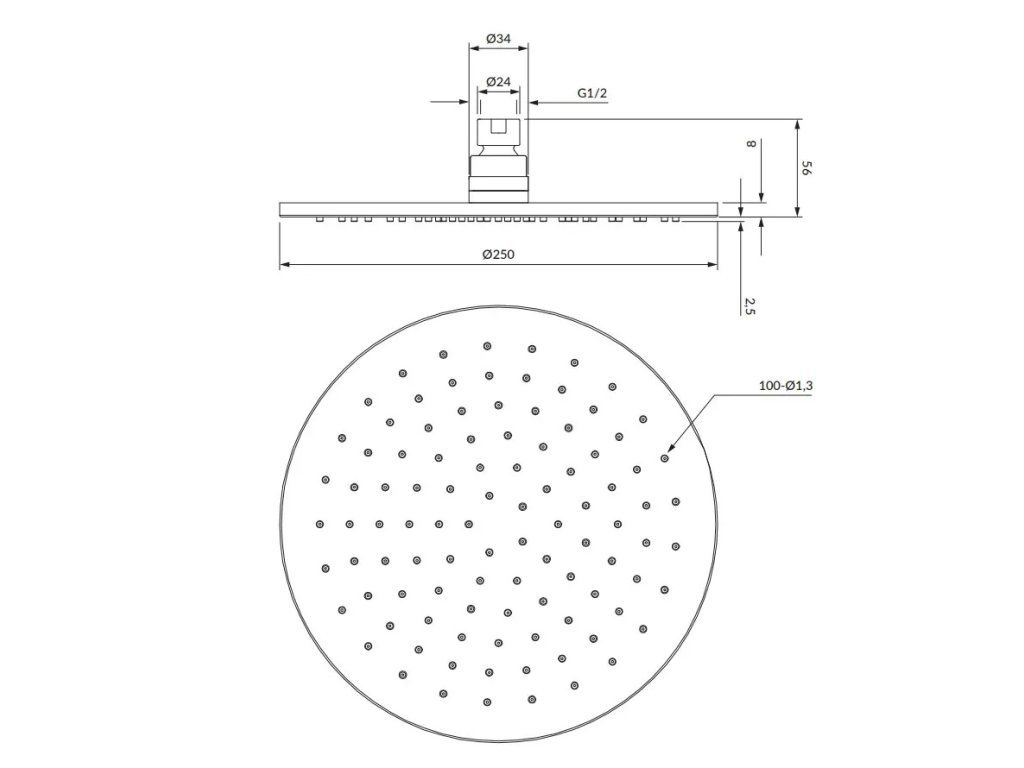 OMNIRES Slimline - Hlavová sprcha, průměr 25 cm, zlato kartáčované