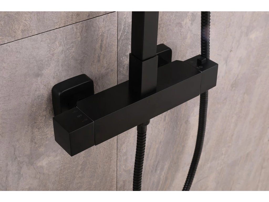 CERANO - Sprchový nástěnný sloup Elma - termostatická sprchová baterie - černá matná