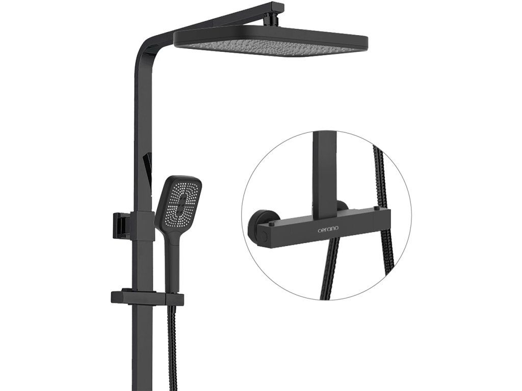 CERANO - Sprchový nástěnný sloup Octavia - termostatická sprchová baterie - černá matná