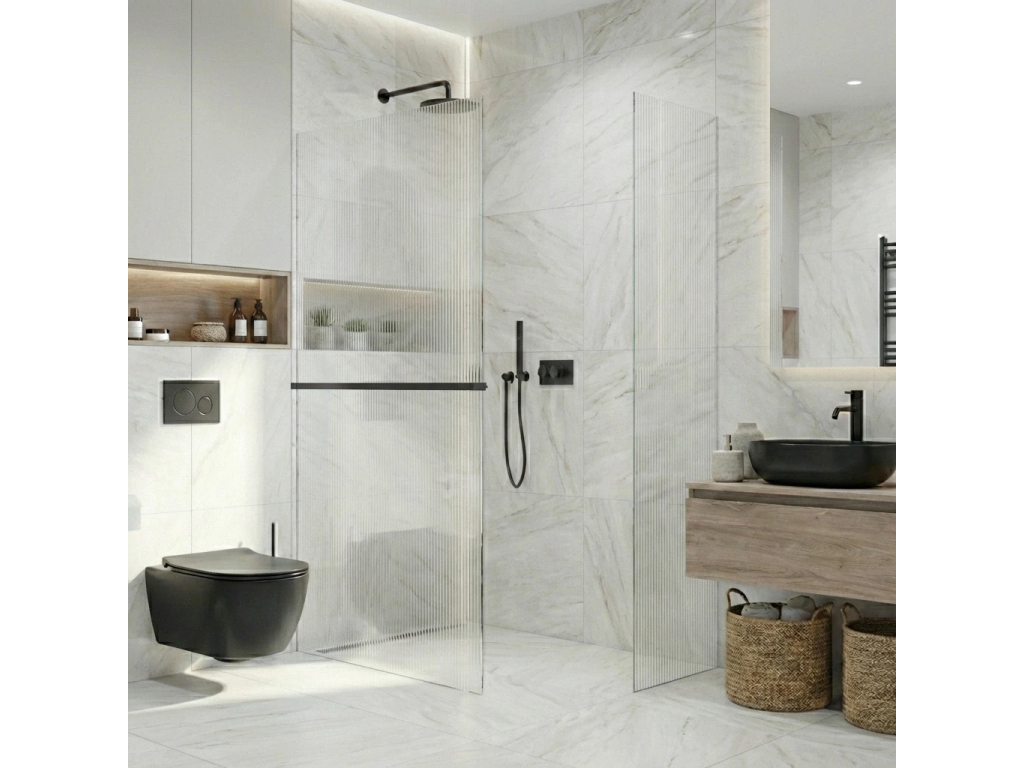 Díky promyšlené konstrukci je sklo uchyceno skrytě do profilů, které lze zapustit zcela nebo částečně ( až 14 mm do obkladů či dlažby). Bez rušivých vzpěr tak vzniká čisté, elegantní řešení, které podtrhne moderní vzhled koupelny a dodá prostoru maximální vizuální lehkost.
