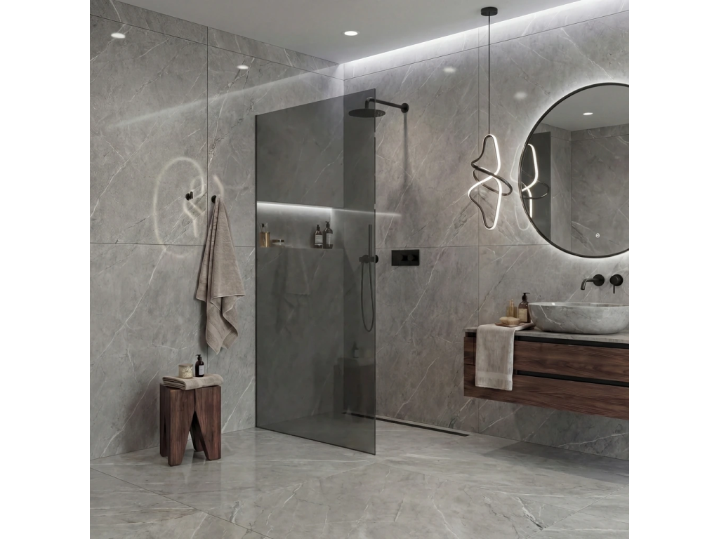 Díky promyšlené konstrukci je sklo uchyceno skrytě do profilů, které lze zapustit zcela nebo částečně ( až 14 mm do obkladů či dlažby). Bez rušivých vzpěr tak vzniká čisté, elegantní řešení, které podtrhne moderní vzhled koupelny a dodá prostoru maximální vizuální lehkost.