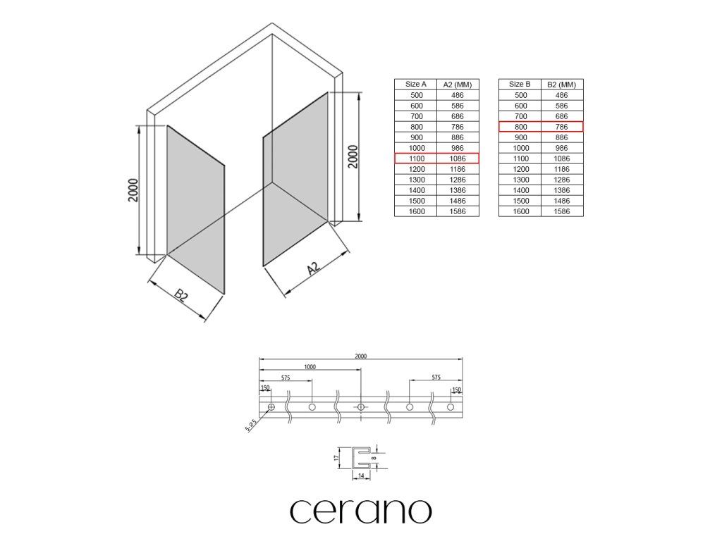 V rámci této série nabízíme širokou škálu rozměrů, abychom uspokojili různé potřeby našich zákazníků. Všechny sprchové kouty, dveře a zástěny značky Cerano jsou plně kompatibilní se sprchovými vaničkami Cerano ve stejných rozměrech, což zajišťuje bezproblémovou instalaci a dokonalé sladění. Sprchový kout lze navíc instalovat flexibilně – buď na odpovídající sprchovou vaničku, nebo přímo na podlahu podle vašich preferencí a možností koupelny.
