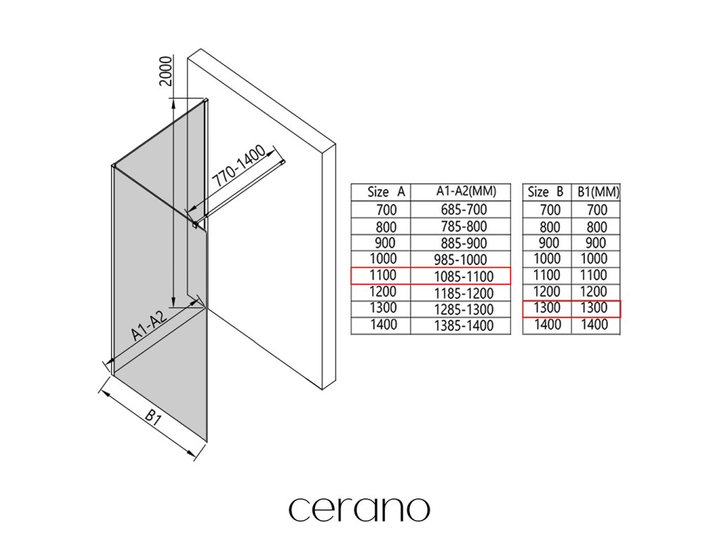 V rámci této série nabízíme širokou škálu rozměrů, abychom uspokojili různé potřeby našich zákazníků. Všechny sprchové kouty, dveře a zástěny značky Cerano jsou plně kompatibilní se sprchovými vaničkami Cerano ve stejných rozměrech, což zajišťuje bezproblémovou instalaci a dokonalé sladění. Sprchový kout lze navíc instalovat flexibilně – buď na odpovídající sprchovou vaničku, nebo přímo na podlahu podle vašich preferencí a možností koupelny.