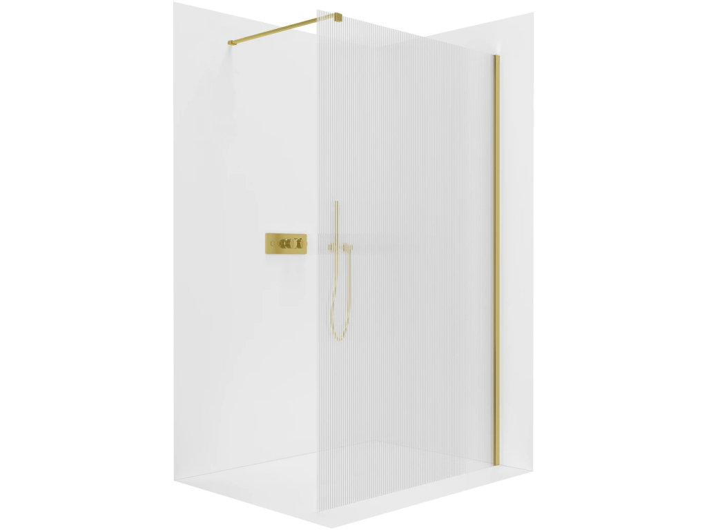 CERANO - Sprchová zástěna Walk-in Onyx Cube L/P - 8 mm - hranatá vzpěra - zlatá, rýhované sklo - 110x200 cm