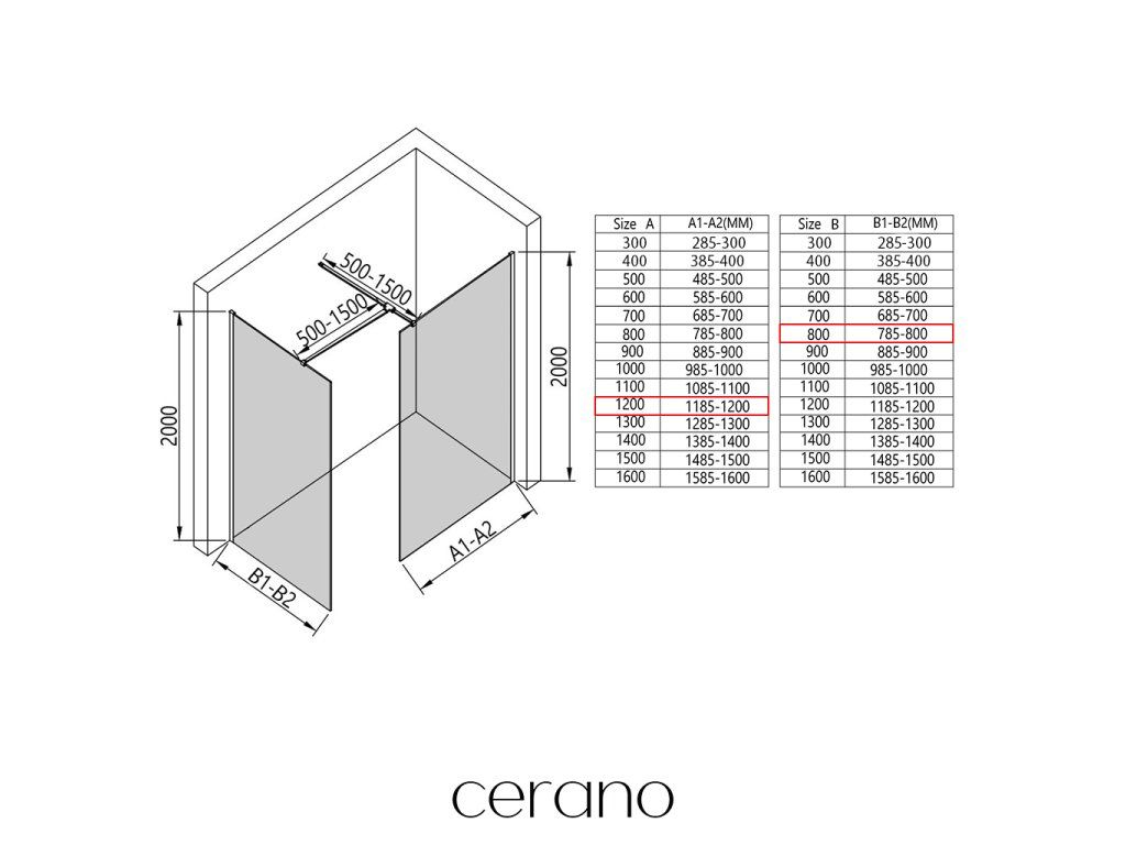 V rámci této série nabízíme širokou škálu rozměrů, abychom uspokojili různé potřeby našich zákazníků. Všechny sprchové kouty, dveře a zástěny značky Cerano jsou plně kompatibilní se sprchovými vaničkami Cerano ve stejných rozměrech, což zajišťuje bezproblémovou instalaci a dokonalé sladění. Sprchový kout lze navíc instalovat flexibilně – buď na odpovídající sprchovou vaničku, nebo přímo na podlahu podle vašich preferencí a možností koupelny.