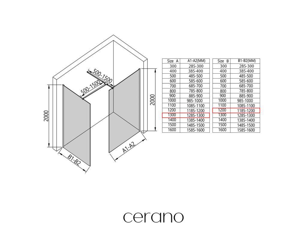 V rámci této série nabízíme širokou škálu rozměrů, abychom uspokojili různé potřeby našich zákazníků. Všechny sprchové kouty, dveře a zástěny značky Cerano jsou plně kompatibilní se sprchovými vaničkami Cerano ve stejných rozměrech, což zajišťuje bezproblémovou instalaci a dokonalé sladění. Sprchový kout lze navíc instalovat flexibilně – buď na odpovídající sprchovou vaničku, nebo přímo na podlahu podle vašich preferencí a možností koupelny.