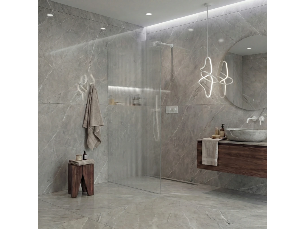 Díky promyšlené konstrukci je sklo uchyceno skrytě do profilů, které lze zapustit zcela nebo částečně ( až 14 mm do obkladů či dlažby). Bez rušivých vzpěr tak vzniká čisté, elegantní řešení, které podtrhne moderní vzhled koupelny a dodá prostoru maximální vizuální lehkost.