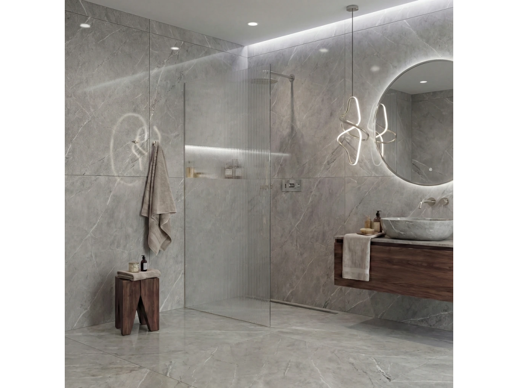 Díky promyšlené konstrukci je sklo uchyceno skrytě do profilů, které lze zapustit zcela nebo částečně ( až 14 mm do obkladů či dlažby). Bez rušivých vzpěr tak vzniká čisté, elegantní řešení, které podtrhne moderní vzhled koupelny a dodá prostoru maximální vizuální lehkost.