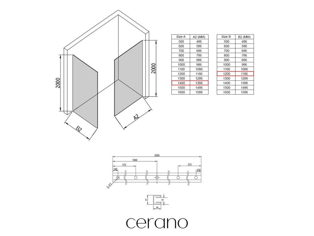V rámci této série nabízíme širokou škálu rozměrů, abychom uspokojili různé potřeby našich zákazníků. Všechny sprchové kouty, dveře a zástěny značky Cerano jsou plně kompatibilní se sprchovými vaničkami Cerano ve stejných rozměrech, což zajišťuje bezproblémovou instalaci a dokonalé sladění. Sprchový kout lze navíc instalovat flexibilně – buď na odpovídající sprchovou vaničku, nebo přímo na podlahu podle vašich preferencí a možností koupelny.