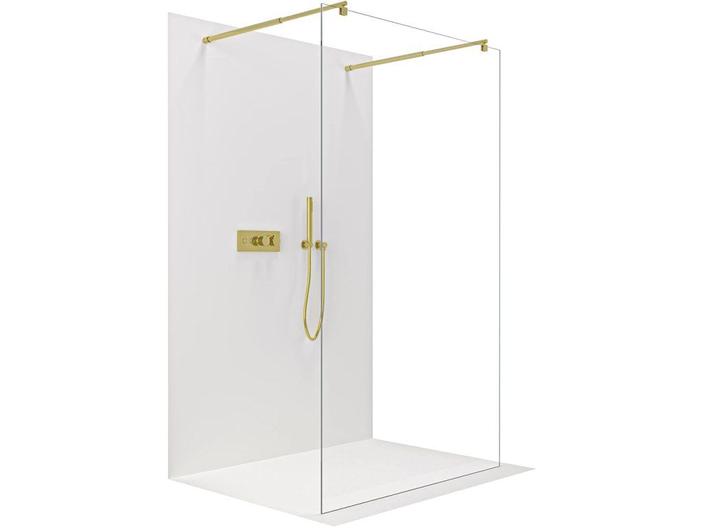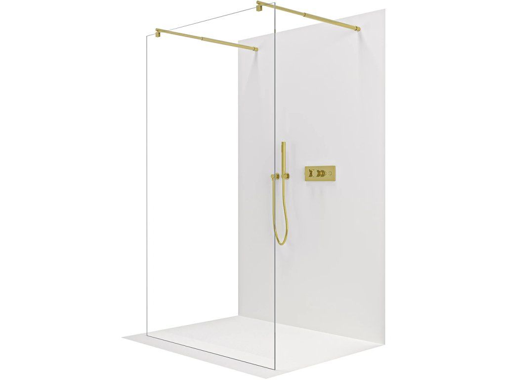 CERANO - Sprchová zástěna Walk-in Onyx Duo L/P - 8 mm - kulatá vzpěra - zlatá, transparentní sklo - 140x200 cm