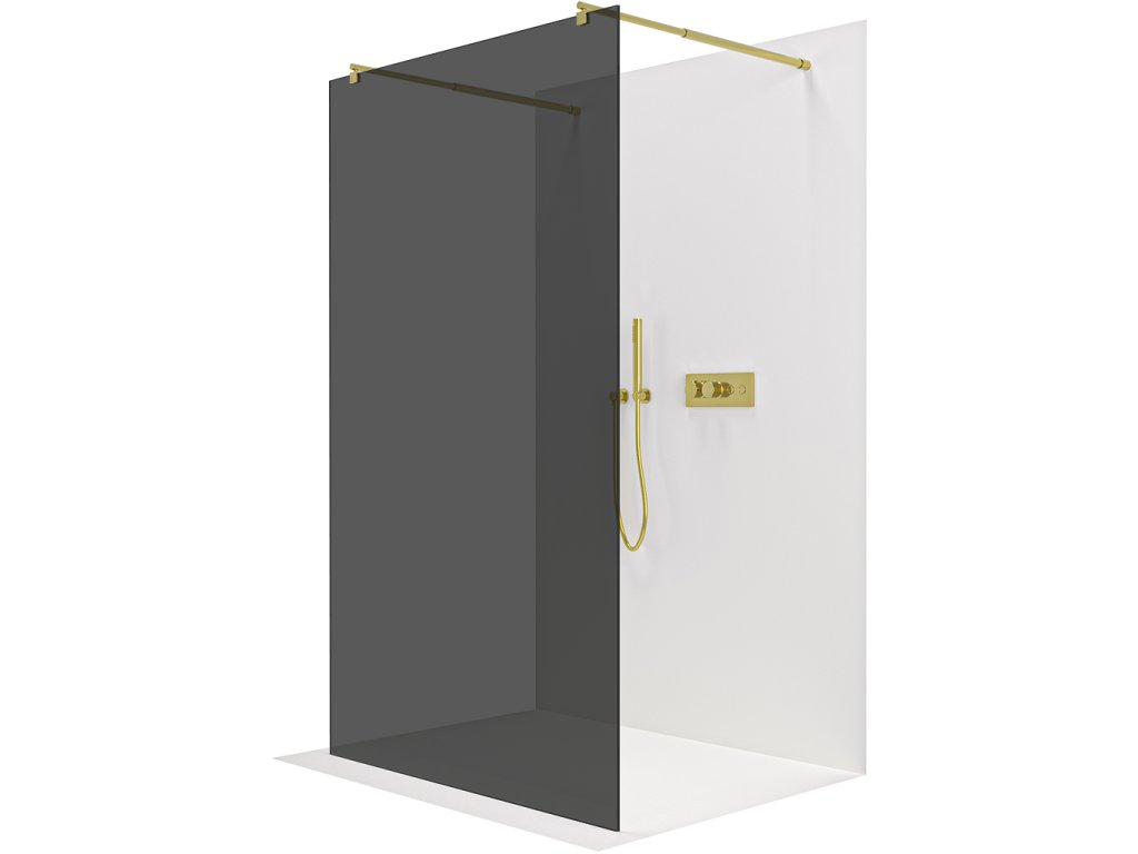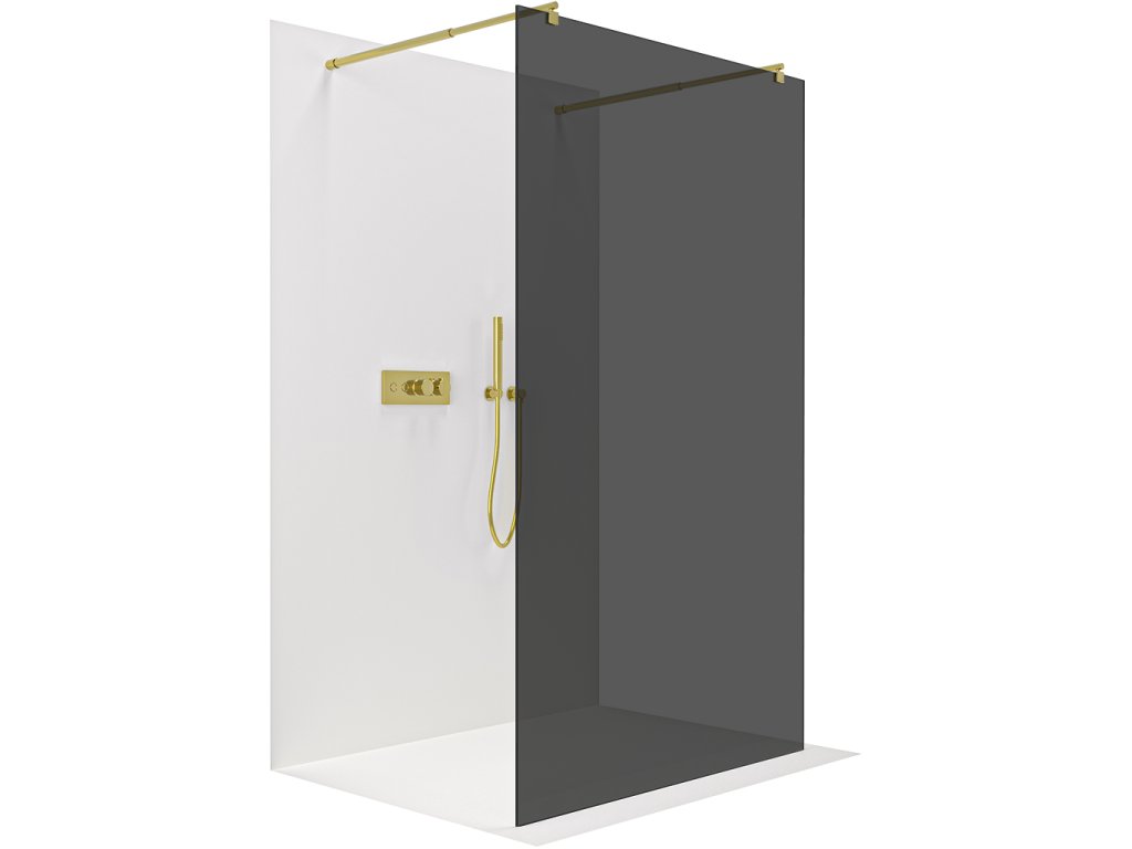 CERANO - Sprchová zástěna Walk-in Onyx Duo L/P - 8 mm - kulatá vzpěra - zlatá kartáčovaná, grafitové sklo - 140x200 cm