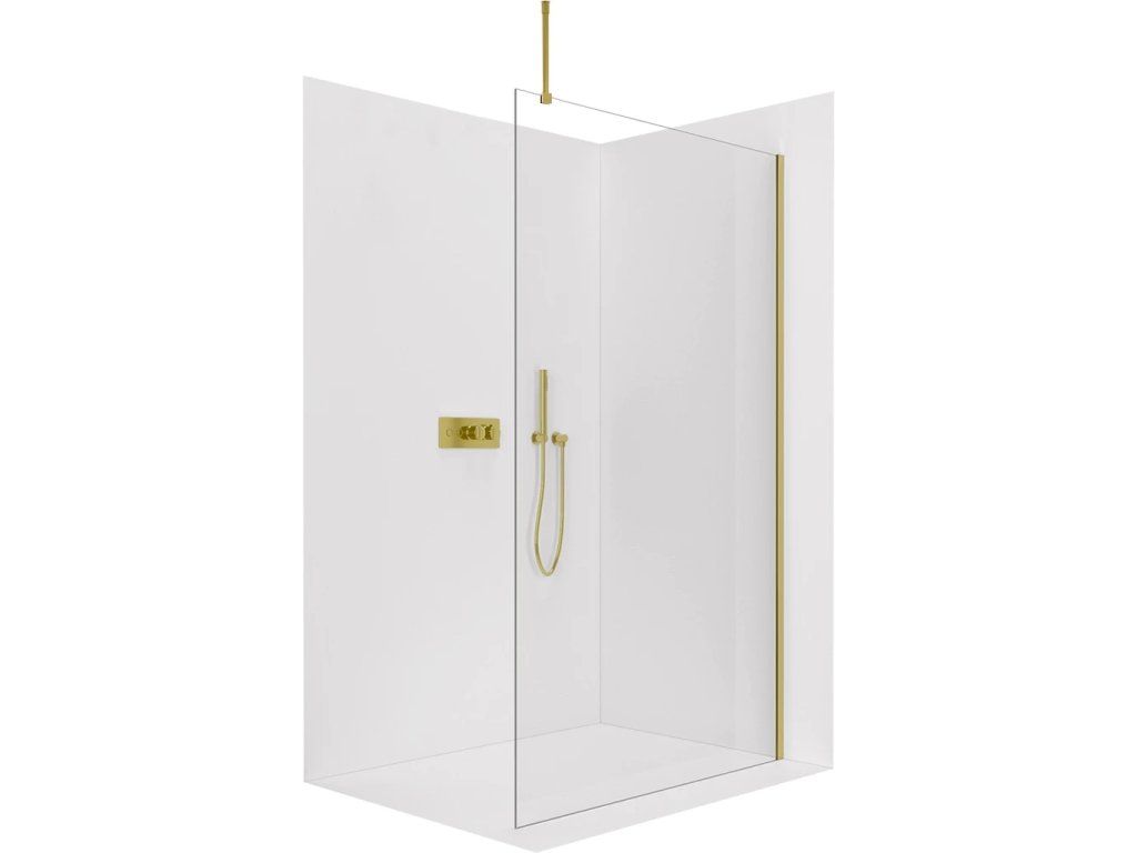 CERANO - Sprchová zástěna Walk-in Onyx Top Round L/P - 8 mm - kulatá vzpěra - zlatá, transparentní sklo - 140x200 cm