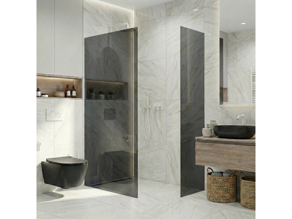 Díky promyšlené konstrukci je sklo uchyceno skrytě do profilů, které lze zapustit zcela nebo částečně ( až 14 mm do obkladů či dlažby). Bez rušivých vzpěr tak vzniká čisté, elegantní řešení, které podtrhne moderní vzhled koupelny a dodá prostoru maximální vizuální lehkost.
