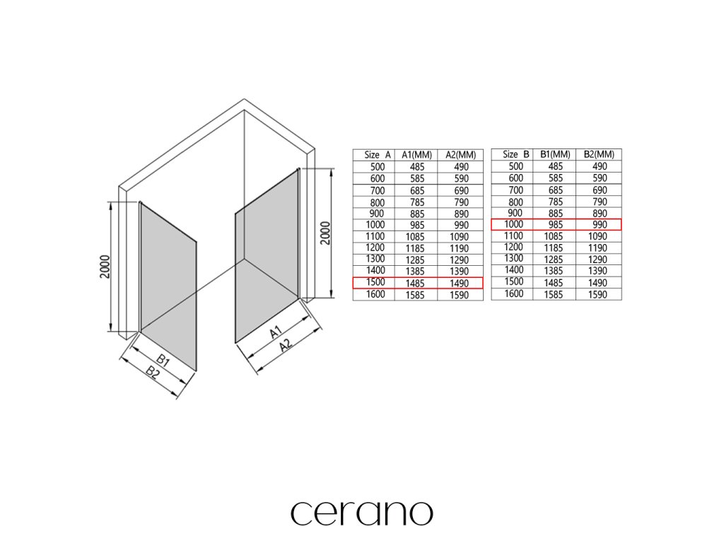 V rámci této série nabízíme širokou škálu rozměrů, abychom uspokojili různé potřeby našich zákazníků. Všechny sprchové kouty, dveře a zástěny značky Cerano jsou plně kompatibilní se sprchovými vaničkami Cerano ve stejných rozměrech, což zajišťuje bezproblémovou instalaci a dokonalé sladění. Sprchový kout lze navíc instalovat flexibilně – buď na odpovídající sprchovou vaničku, nebo přímo na podlahu podle vašich preferencí a možností koupelny.