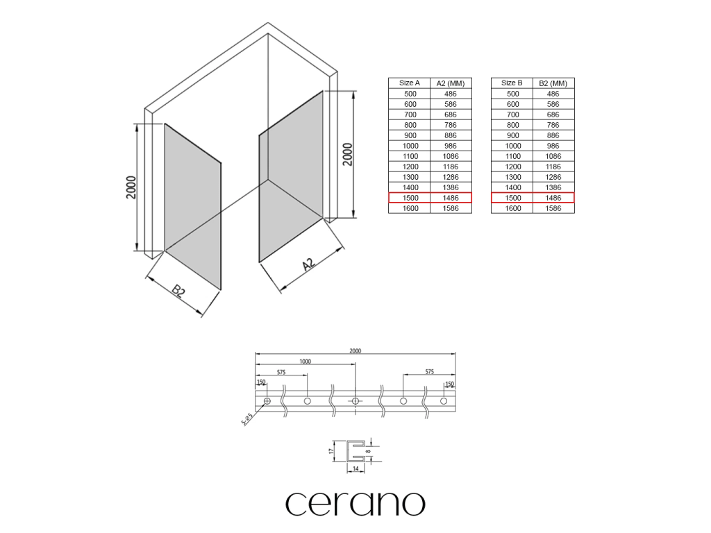 V rámci této série nabízíme širokou škálu rozměrů, abychom uspokojili různé potřeby našich zákazníků. Všechny sprchové kouty, dveře a zástěny značky Cerano jsou plně kompatibilní se sprchovými vaničkami Cerano ve stejných rozměrech, což zajišťuje bezproblémovou instalaci a dokonalé sladění. Sprchový kout lze navíc instalovat flexibilně – buď na odpovídající sprchovou vaničku, nebo přímo na podlahu podle vašich preferencí a možností koupelny.