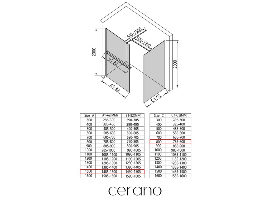 V rámci této série nabízíme širokou škálu rozměrů, abychom uspokojili různé potřeby našich zákazníků. Všechny sprchové kouty, dveře a zástěny značky Cerano jsou plně kompatibilní se sprchovými vaničkami Cerano ve stejných rozměrech, což zajišťuje bezproblémovou instalaci a dokonalé sladění. Sprchový kout lze navíc instalovat flexibilně – buď na odpovídající sprchovou vaničku, nebo přímo na podlahu podle vašich preferencí a možností koupelny.