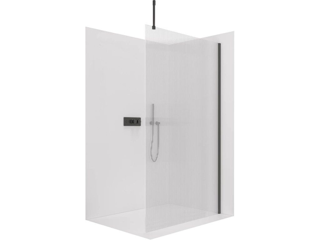 CERANO - Sprchová zástěna Walk-in Onyx Top Cube L/P - 8 mm - hranatá vzpěra - černá matná, rýhované sklo - 150x200 cm