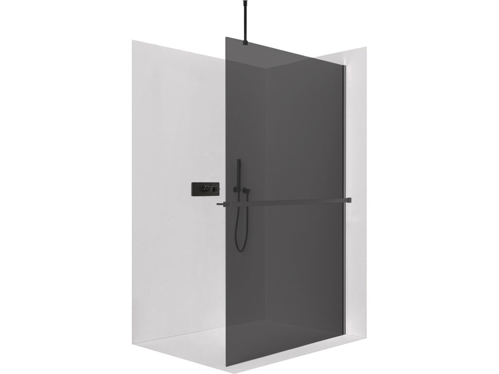 CERANO - Sprchová zástěna Walk-in Onyx Top Round L/P - 8 mm - kulatá vzpěra + polička/držák na ručníky - černá matná, grafitové sklo - 150x200 cm