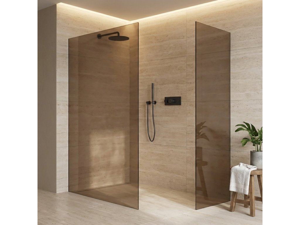 CERANO - Sprchová zástěna Walk-in Crystal T L/P - 8 mm - bezvzpěrový systém - černá matná, bronzové sklo - 160x150x200 cm