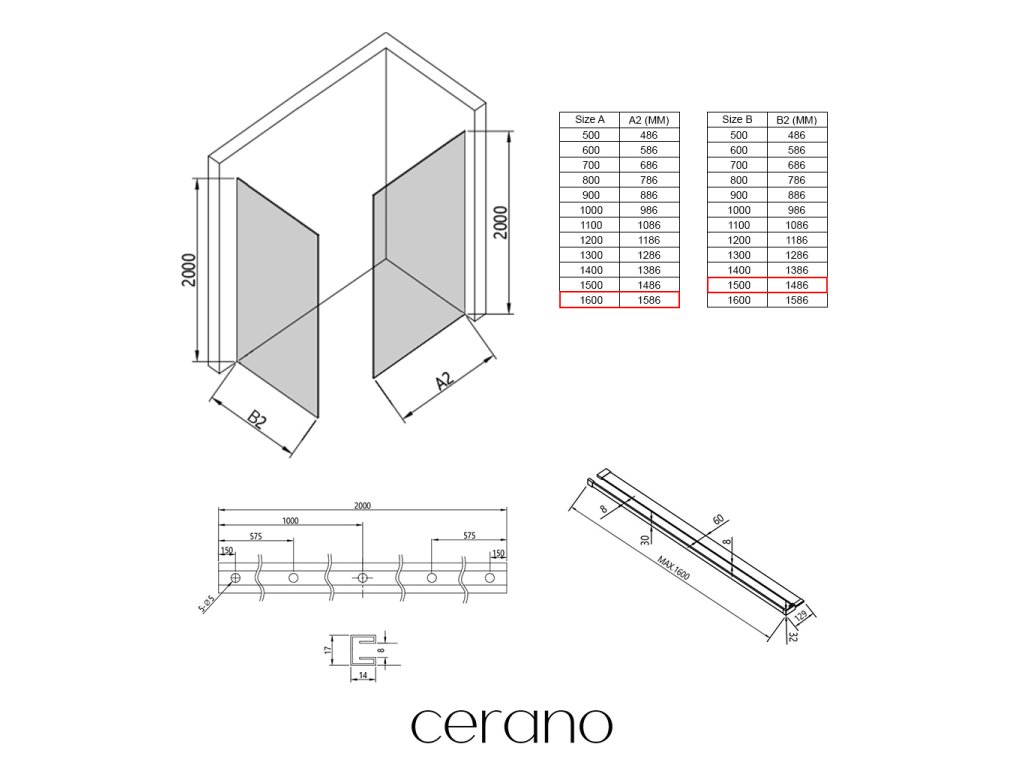 V rámci této série nabízíme širokou škálu rozměrů, abychom uspokojili různé potřeby našich zákazníků. Všechny sprchové kouty, dveře a zástěny značky Cerano jsou plně kompatibilní se sprchovými vaničkami Cerano ve stejných rozměrech, což zajišťuje bezproblémovou instalaci a dokonalé sladění. Sprchový kout lze navíc instalovat flexibilně – buď na odpovídající sprchovou vaničku, nebo přímo na podlahu podle vašich preferencí a možností koupelny.