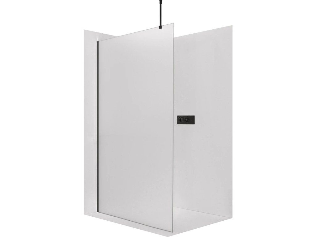 CERANO - Sprchová zástěna Walk-in Onyx Top Round L/P - 8 mm - kulatá vzpěra - černá matná, mléčné sklo - 160x200 cm